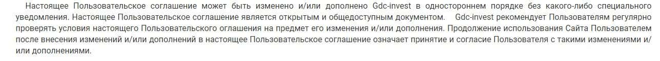 Жулики ГДЦ Инвест имеют право изменять правила пользования сайтом без предварительного уведомления об этом пользователей сайта.