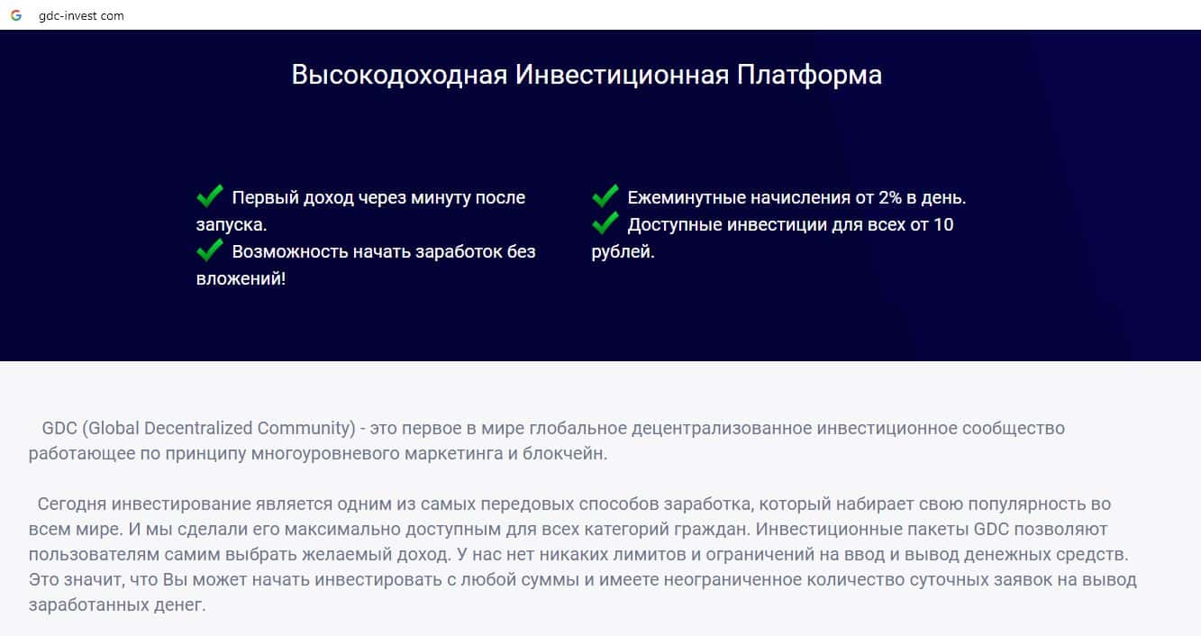 gdc-invest com - официальный веб-сервис шараги Global Decentralized Community