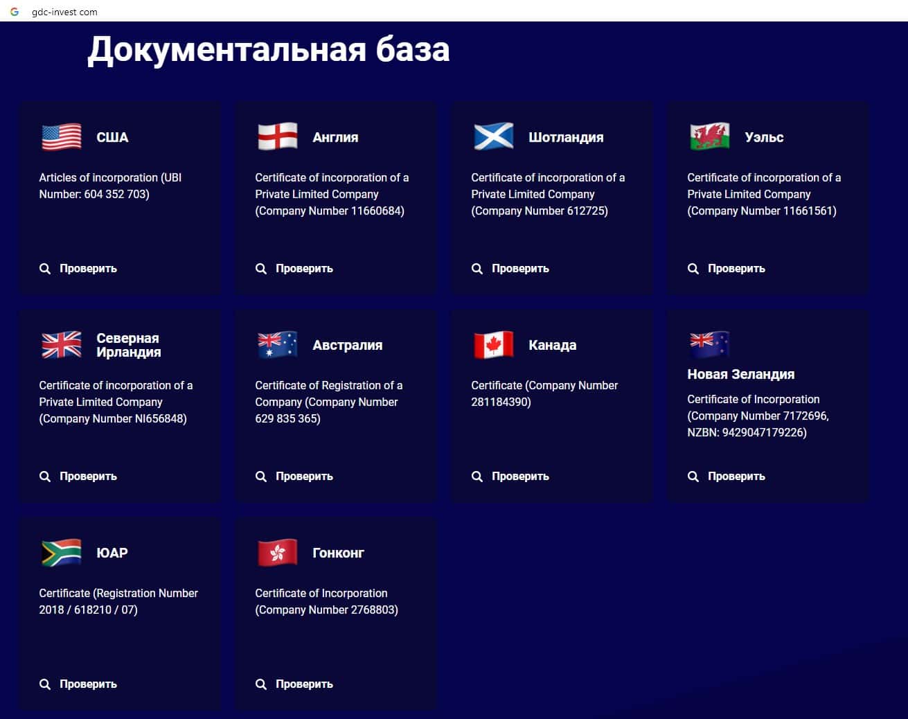 На веб-ресурсе жульнической конторы GDC Invest размещено множество ссылок на якобы документальную базу компании, большинство из которых не работает.