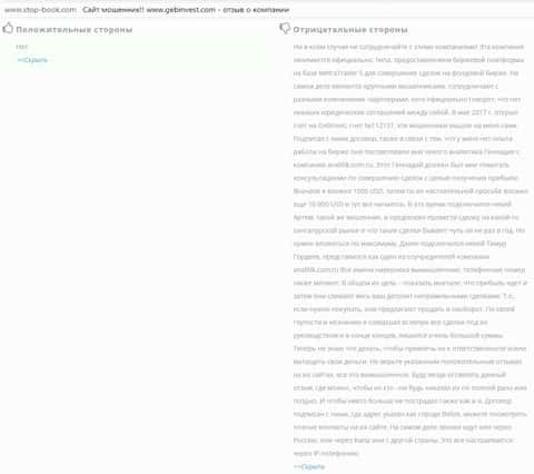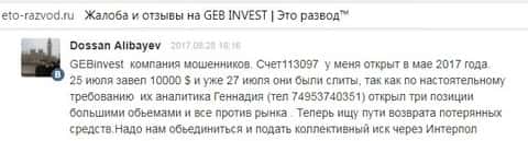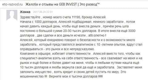 - Автор статьи о наглых мошенниках ГЕБ Invest