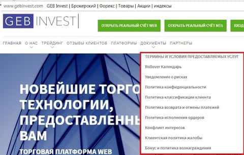 - Все контактные данные на веб-сайте GEB Invest – липа