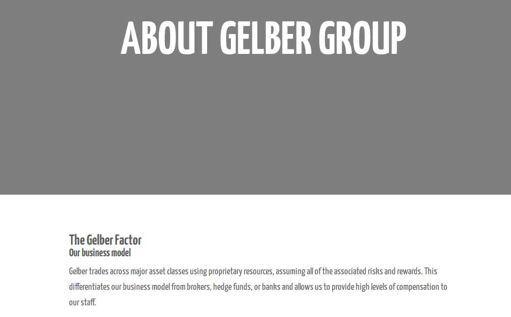 Начинается веб-сайт у лохотрона Gelber с довольно типичной шапки сайта, в которой у лохотрона Гелбер имеется краткое описание их конторы, под предлогом которого мошенники Gelber заманивают пользователей для дальнейшего их развода. На изображении, расположенном ниже, вы можете наглядно увидеть начало сайта шулеров Гелбер.