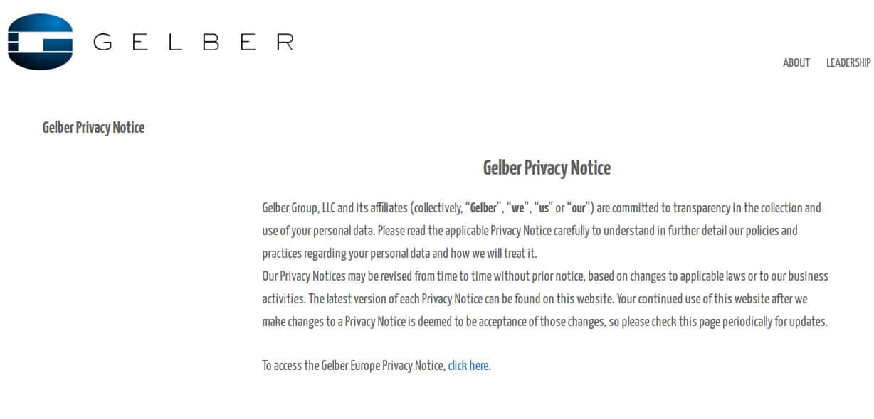 Политика конфиденциальности аферистов Gelber ничего толкового из себя не представляет, а просто говорит о том, что наивные пользователи соглашаются со всеми условиями сотрудничества аферистов Гелбер. На изображении, расположенном ниже, вы можете наглядно увидеть политику конфиденциальности мошенников Gelber.