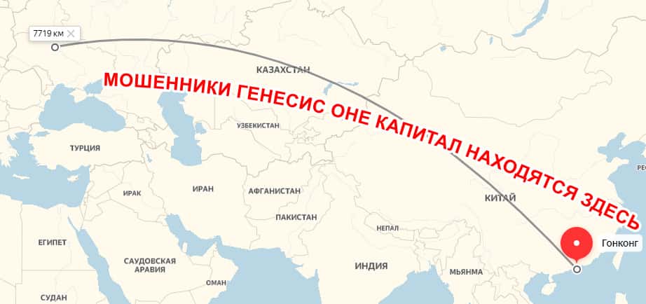 Судя по данням, представленным на сайте Генесис Оне Капитал, главные офис этой шарашкиной конторы располагается в оффшоре в Гонг-Конге. Хотя, проанализировав адрес, указанный на сайте Genesis One Capital, наша редакция придерживается мнения, что этот ардес с большой вероятностью может оказаться липовым: