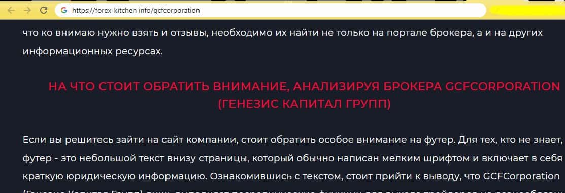 Одним из самых интересных разделов подвального сайта GCFCorporation является отказ от ответственности. В котором аферисты Генезис Капитал Групп прямым текстом пишут, что сам сайт создан только для ознакомления а не для заработка денег. В случае если подвальная кухня GCFCorporation даст вам не верную информацию, вся ответственность только на вас.