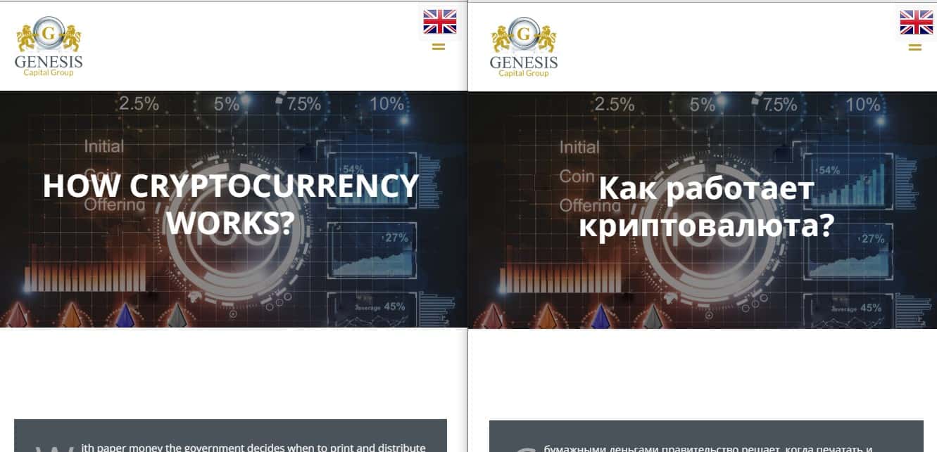 - Раздел с криптовалютными ресурсами у аферистов Генезис Капитал Групп
