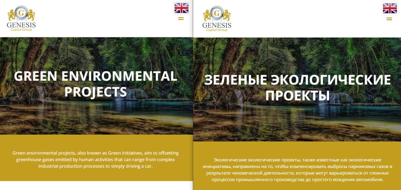 - Внешний вид сайта аферистов Генезис Капитал Групп и обзор на него