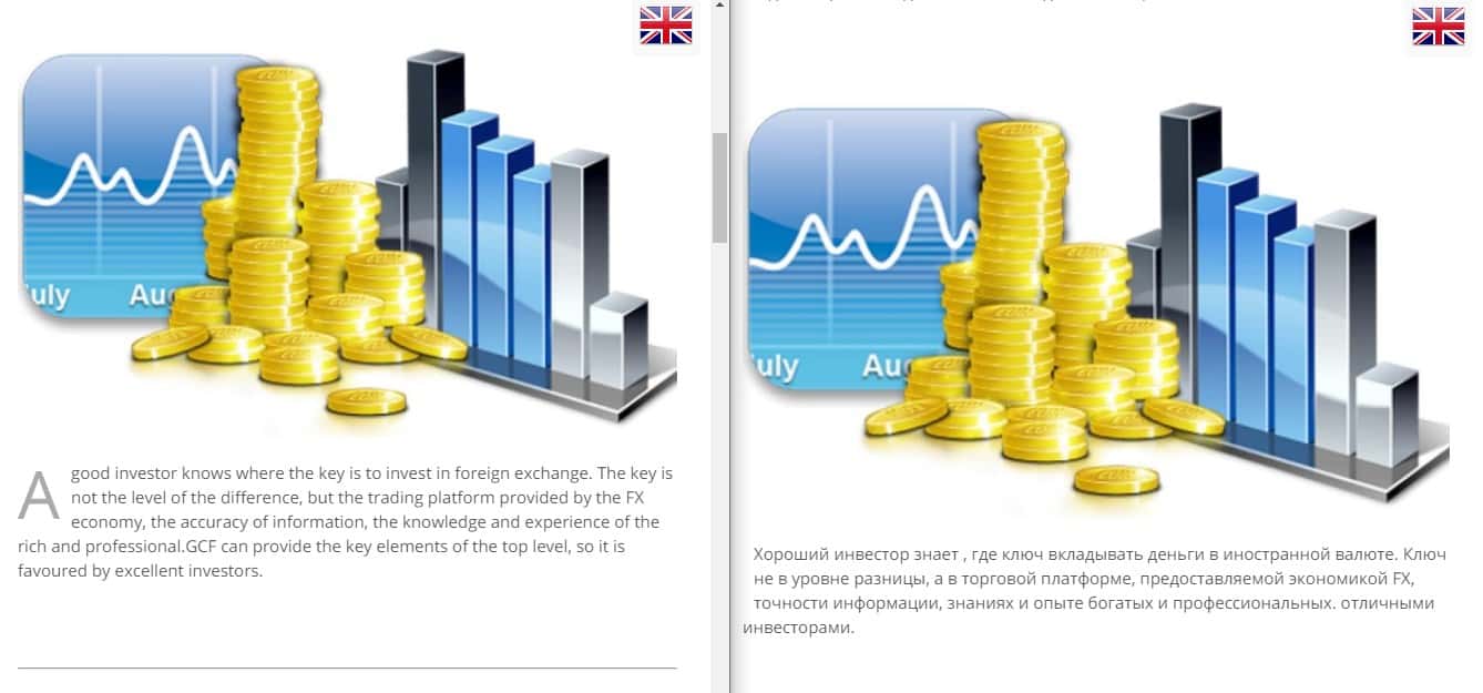 Внешний вид сайта лохотрона GCFCorporation просто бьет в глаза излишней информацией. Как только клиент заходит на сайт перед глазами появляется куча информации не имеющей отношения ни к заработку ник самим финансовым рынкам. Только куча не нужной рекламы других сайтов и не понятной информации о них.