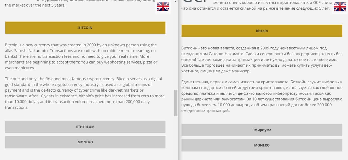 Бредовый раздел о криптовалютах у лохотрона GCFCorporation