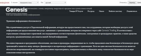 На сайте мошенников Genesis Trading нас встречает типичный сайт с картинкой на весь экран и громкими надписями о надежности аферистов. Выполнено все довольно стандартно, и не факт что сайт не создан по готовому шаблону. Дешево и сердито - основное правило шулеров Генезис Трейдинг.