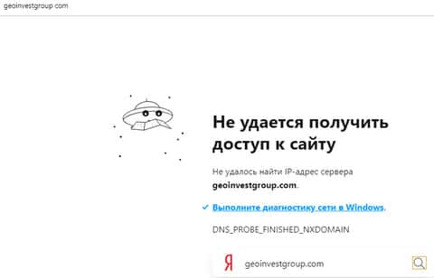 На данный момент сайт интернет-лохотрона Гео Инвест Груп не работает, как и сама контора. Жулики опрокинули достаточно много людей, чтобы можно было прикрыться в лучших традициях финансовой пирамиды МММ. Как обычно заработали только ее владельцы, а все остальные получили ценный опыт о том, что халявы в интернете не бывает.