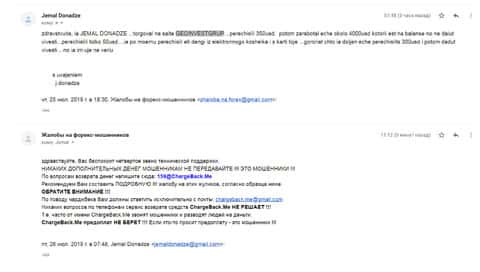 Человек рассказал свою историю, как он попался на удочку к мошенникам Geo Invest Group и потерял порядка 350 долларов. Шарлатаны развели его и просят вложить еще 300 долларов. Потерпевший сразу понял что его кидают по полной и он решил обратиться в организацию ChargeBack.Me за помощью в возврате средств.