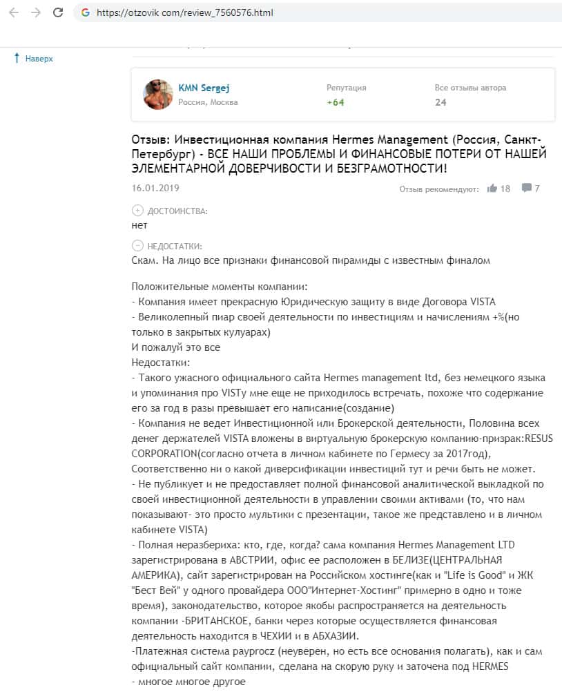 - Обзор главного интернет ресурса жуликов Гермес Менеджмент