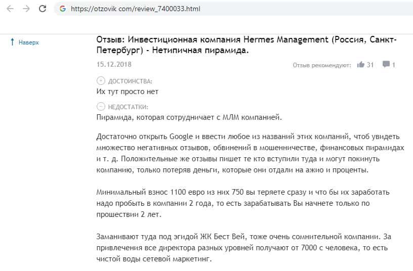 Обзор главного интернет ресурса жуликов Гермес Менеджмент