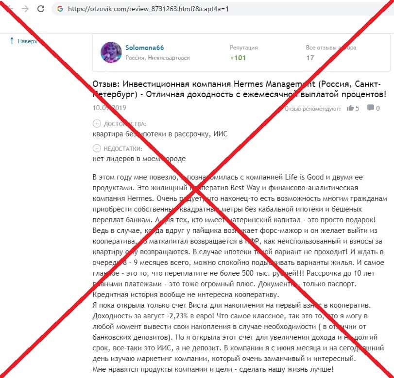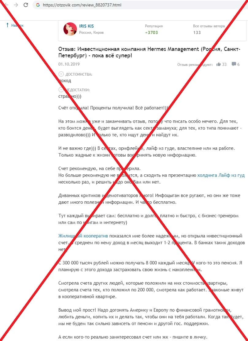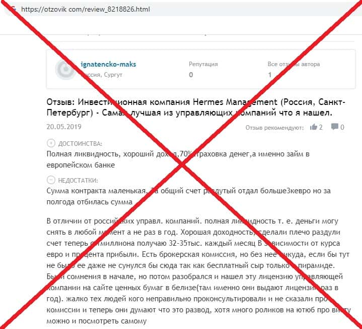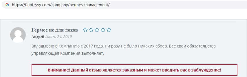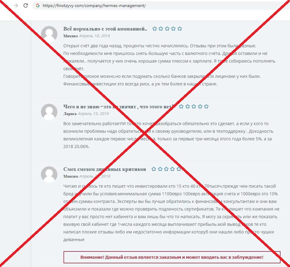 - Фейковые отзывы о мошенниках Гермес Менеджмент
