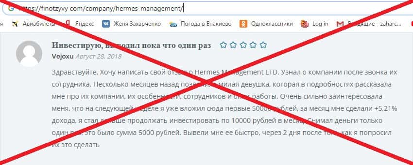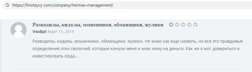 finotzyvy com - сайт с отзывами о мошенниках Гермес Менеджмент