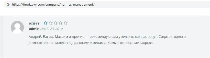 - Фальшивый отзыв от администрации Hermes-Ltd Com