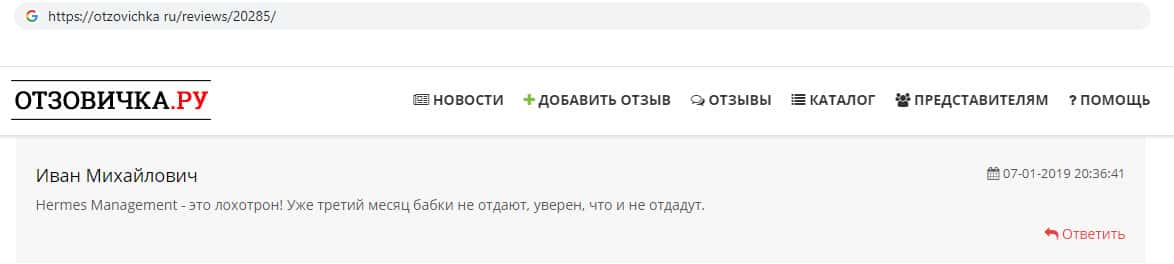 Сайты с отзывами опровергают заказухи от мошенников Hermes-Ltd Com