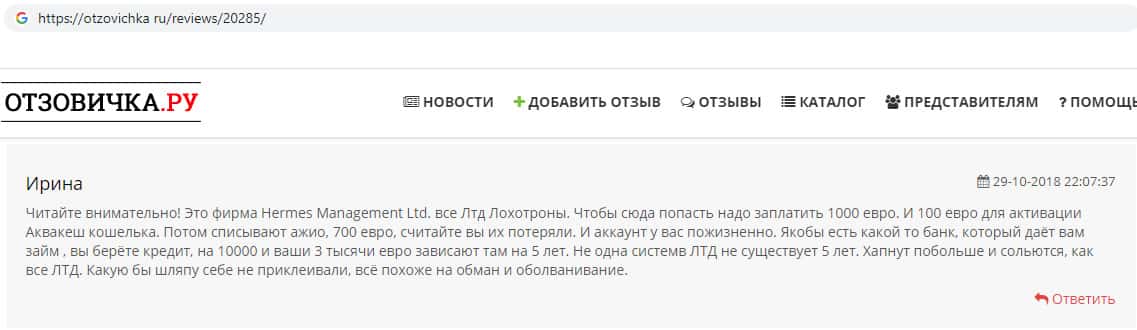 Заказной отзыв от махинаторов Hermes-Ltd Com