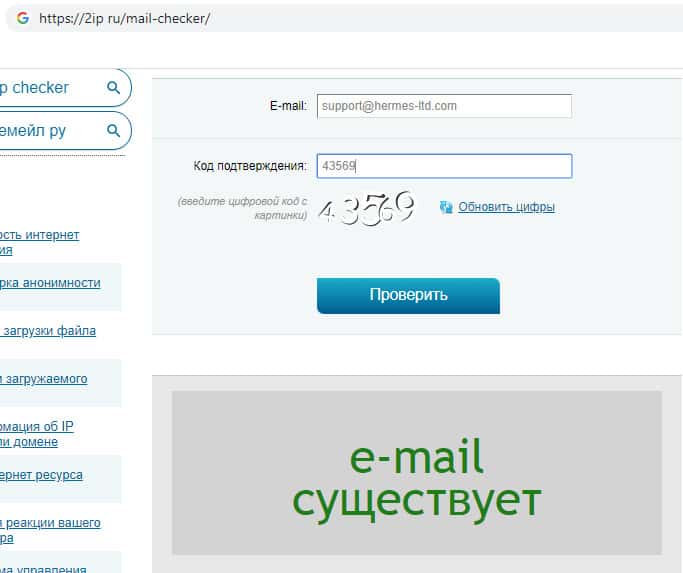 Проверка электронной почты поддержки жуликов Hermes-Ltd Com.