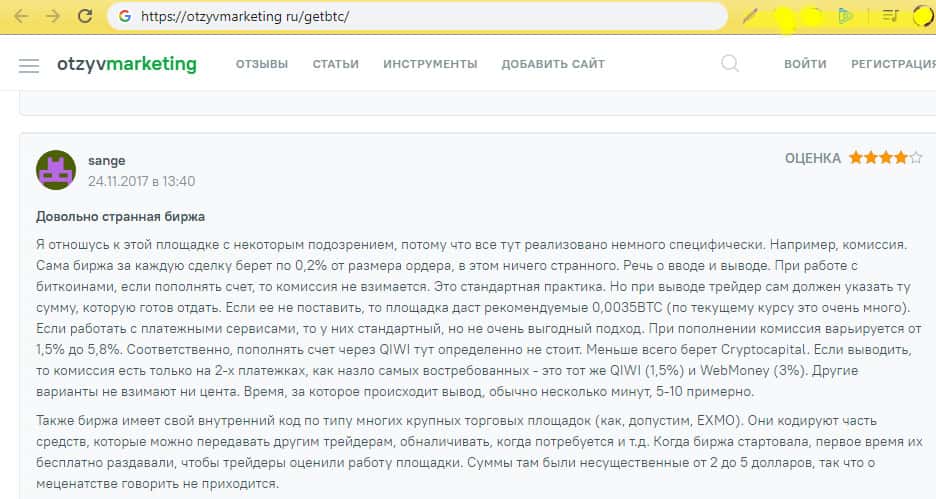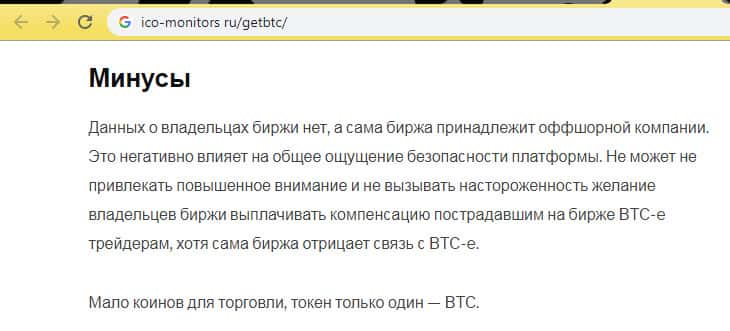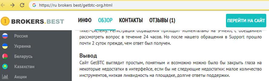 - Негативная статья о мошенниках GetBTC на странице ru brokers best