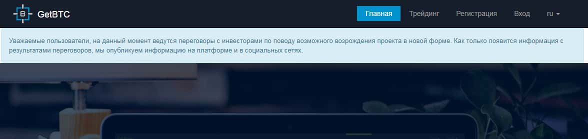 Из-за того, что мошенники GetBTC ведут недобросовестные торги, они просто не смогли за долгое время своей деятельности нормально наладить свою работу, в связи с чем и слились, не оставив о себе никакой информации, контактов, адресов и прочих контактов. Связываться с аферистами GetBTC нельзя!