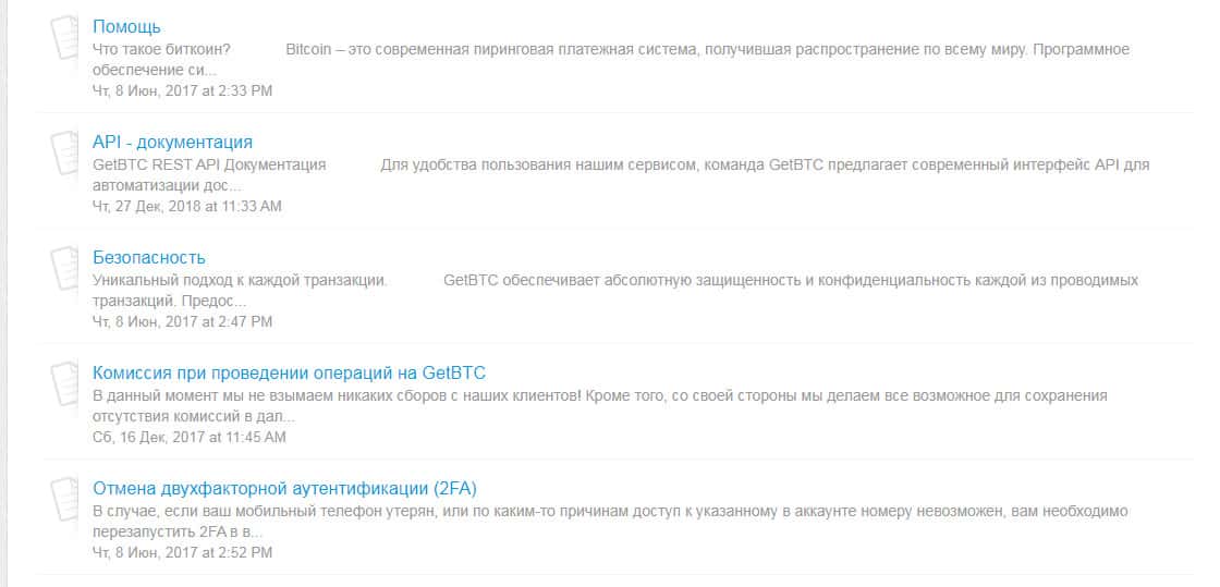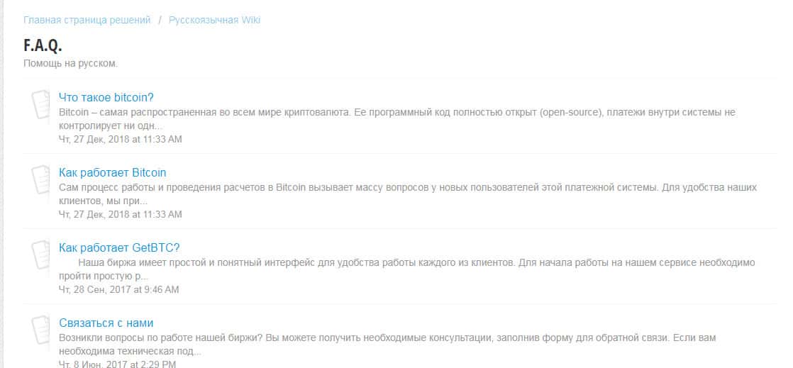 Ещё одним своим преимуществом аферисты из Гет БТС Тех считают свою заботу о просвещении и ответы на вопросы своих трейдеров. По-видимому, вопросы трейдеров прилетают в практическом режиме, в то время, пока брокер GetBTC их "обувает", так как вся познавательная информация сосредоточена исключительно на инвестиционных темах.