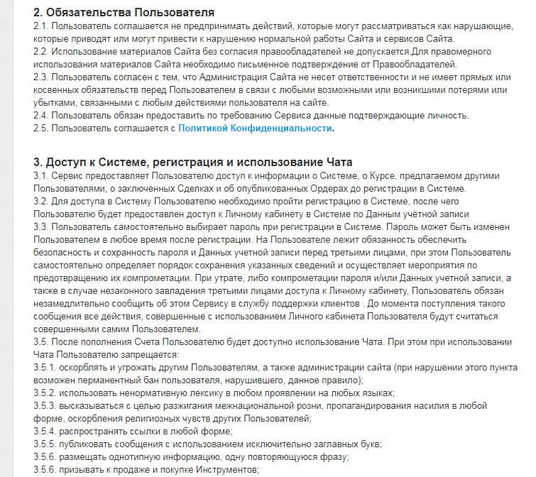 На официальном сайте мошенники GetBTC не выкладывают отдельных документов политики или условий сотрудничества, зато есть единый документ-договор, в котором описаны все моменты, входящие в сотрудничество сторон. Ниже вы видите первый раздел условий сотрудничества с аферистами Гет БТС.