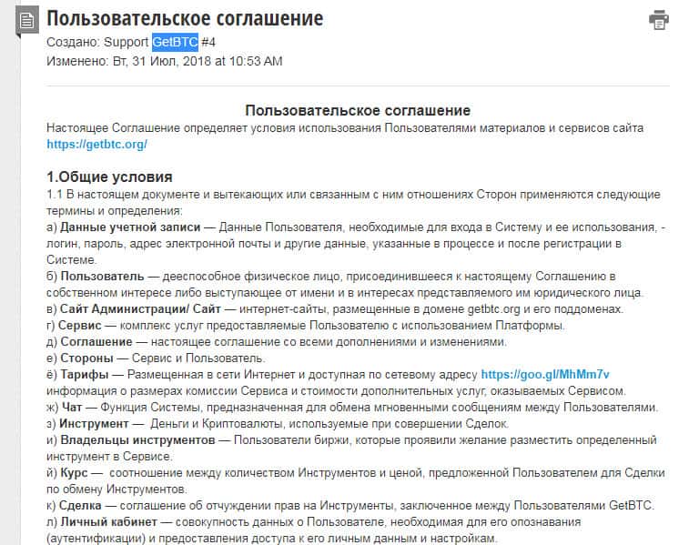 Перечень условий сотрудничества с наглыми аферистами GetBTC