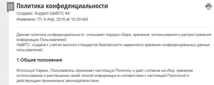 - Условия политики конфиденциальности лохотрона Гет БТС