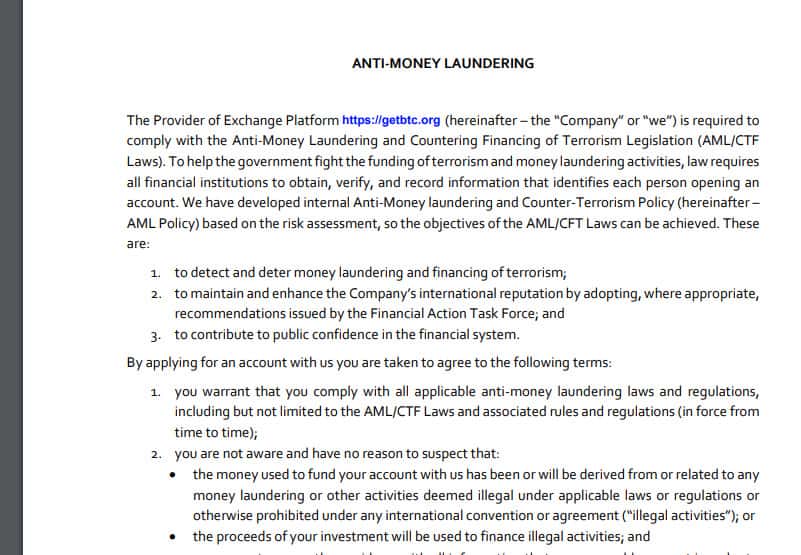 - Подозрительный документ с политикой KYC на сайте у аферистов Гет БТС