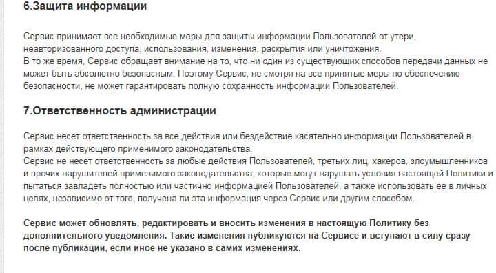 Завершается же политика конфиденциальности у мошенников GetBTC довольно типично и ожидаемо, а именно условием о том, что жулье Гет БТС может в любой момент по своему усмотрению изменить данные условия политики конфиденциальности. На изображении ниже вы можете увидеть окончание политики шулеров GetBTC.