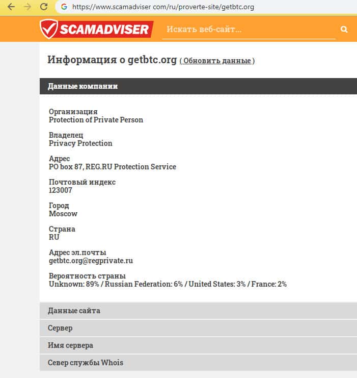 - Первый взгляд на подвальный сайт мошенников GetBTC