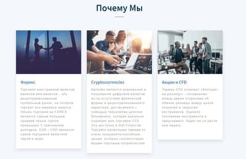 В разделе сайта аферистов Get Financial об аргументах в сторону выбора именно их находится 3 блока, в которых преимуществ никаких абсолютно не присутствует. Вместо этого лишь короткие определения что такое торговля финансами, еще реклама торговли криптовалютой и пиар CFD контрактов на разницу. Исходя из этого можно сделать выводы, что аферисты Гет Финанс пытаются следовать трендам торговли, но никак не создать площадку для стандартных способов торговли.