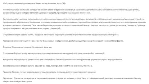 Условия и положения у жуликов Гет Финанс ничего особенного из себя не представляют и внешне оформлены довольно плохо. Но при этом выгоду получают сами аферисты Get Financial, ведь монотонный текст сложнее прочесть, а данный факт приводит к тому что пользователи либо же забивают на это дело, либо читают невнимательно. Для обеспечения максимальной монотонности и неприятности чтения довольно большое место в начале соглашения занимает набор текстовых определений, используемых в документе, который резко и без особых разделителей переходит в сами условия и положения лохотрона Гет Финанс.