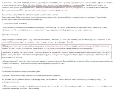 - Условия и положения мошенников Get Financial
