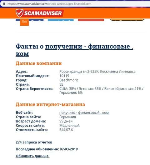 - Подвальный сайт лохотрона Get Financial