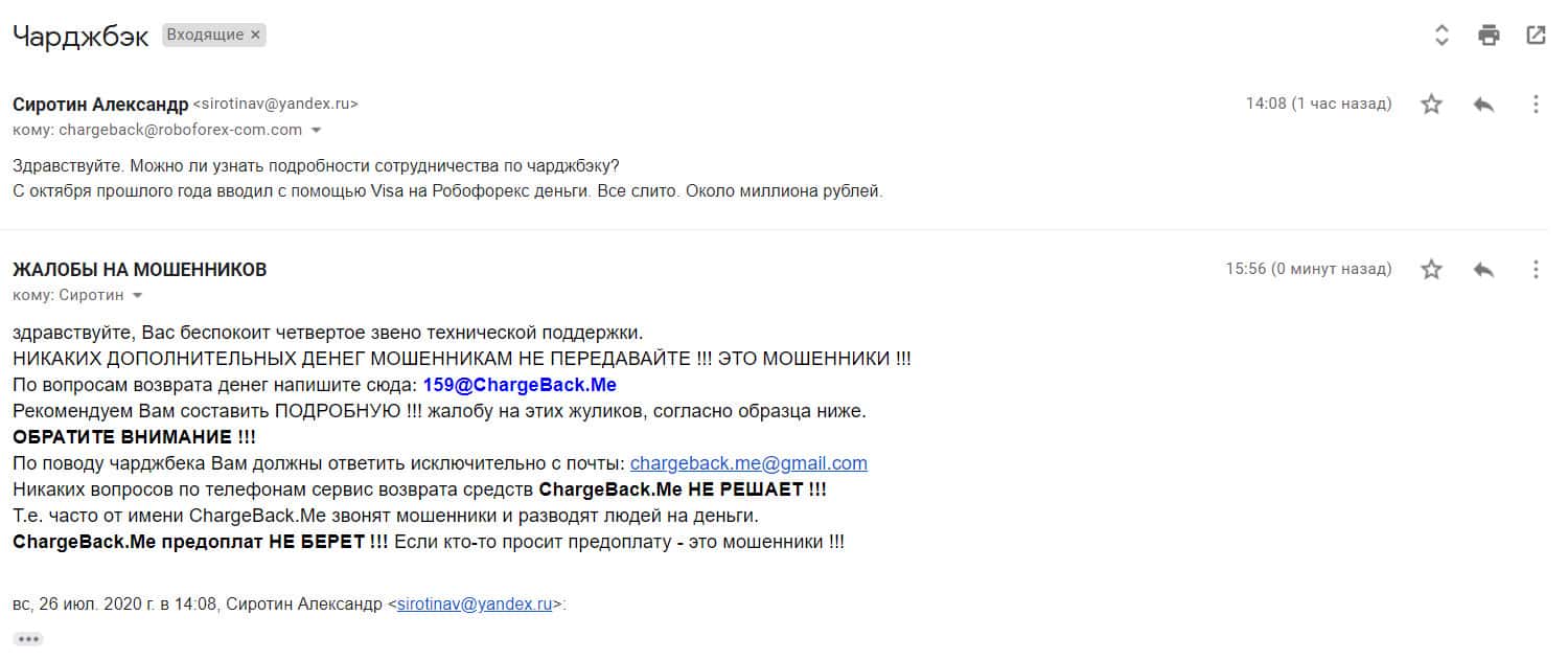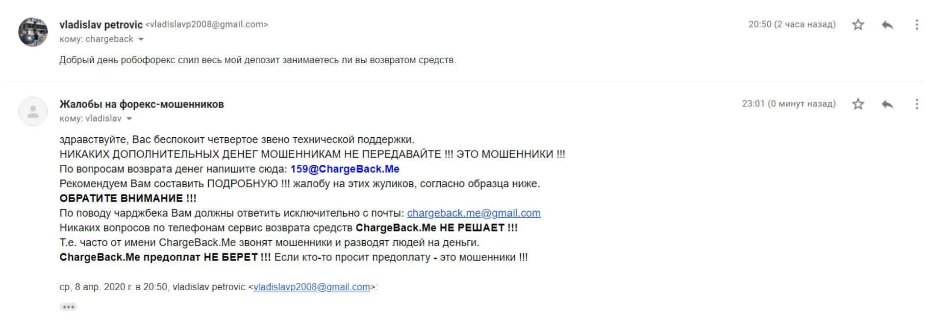 Еще один обманутый пользователь сети Интернет прислал жалобу на аферистов Робо Форекс, которому также сливает клиентов и компания Гет Профит Онлайн.
