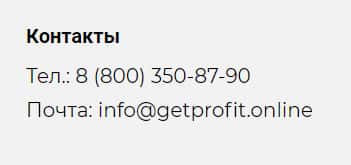 Ниже вы можете ознакомиться с контактной информацией мошеннической организации GetProfit Online, где указан номер телефона и электронная почта: