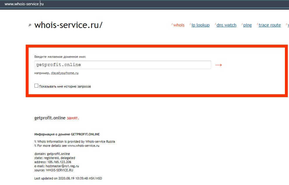Чтобы проверить, кто является владельцем сайта GetProfit Online мы решили обратиться на ресурс whoise-service ru. Как оказалось данные скрыты из-за их шулерской деятельности.