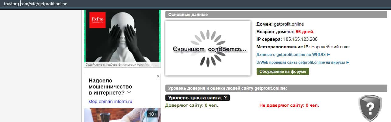 По информации с сайта трасторг ком, псевдошкола GetProfit Online работает всего 3 месяца, поэтому можно считать их кухней-однодневкой.