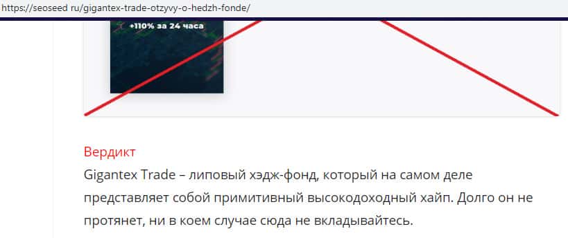 Веб-портал сеосеед ру так же посвятил аферистам Gigantex Trade статью, в которой явно посоветовал не иметь дело с данной мошеннической конторой так как это очередные жулики и хайп и с крайне плохой репутацией, которые занимаются разводом пользователей на ввод средств. Выводы веб-площадки сеосеед ру о жулье Гигантекс Трейд вы можете увидеть ниже.