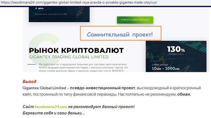 bezobmana24 com - веб-площадка с информацией о жуликах Гигантекс Трейд
