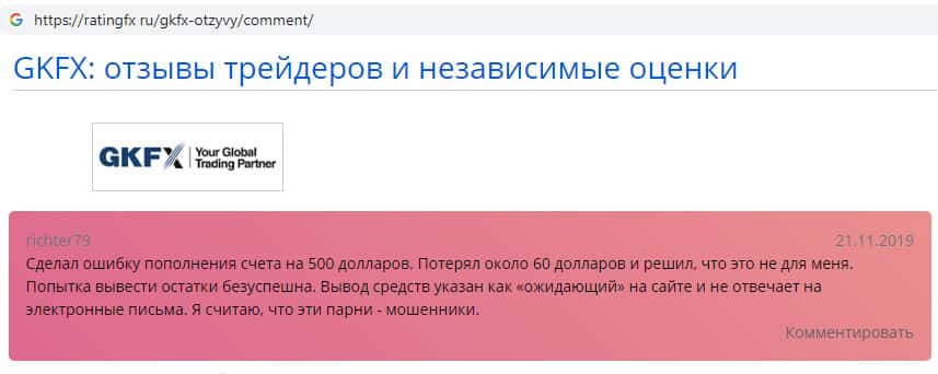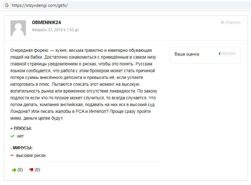 - Отзывы о фейковой конторе GKFX ECN, ныне присутствующие в сети-интернет