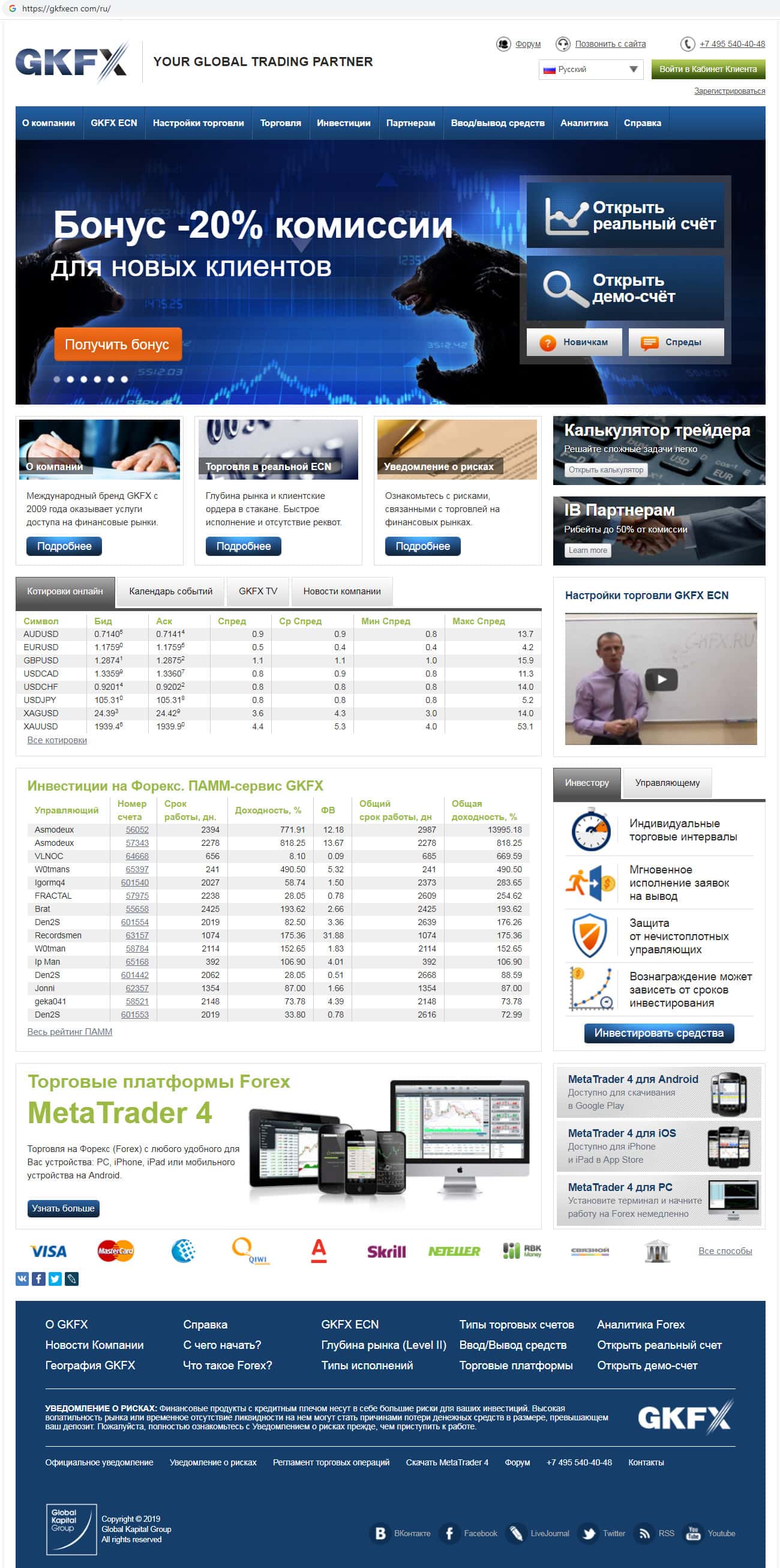 В данном разделе предлагаем увидеть скрин главной веб-страницы онлайн-ресурса конторы GKFX ECN, помните о том, что такие проекты очень быстро скамятся.