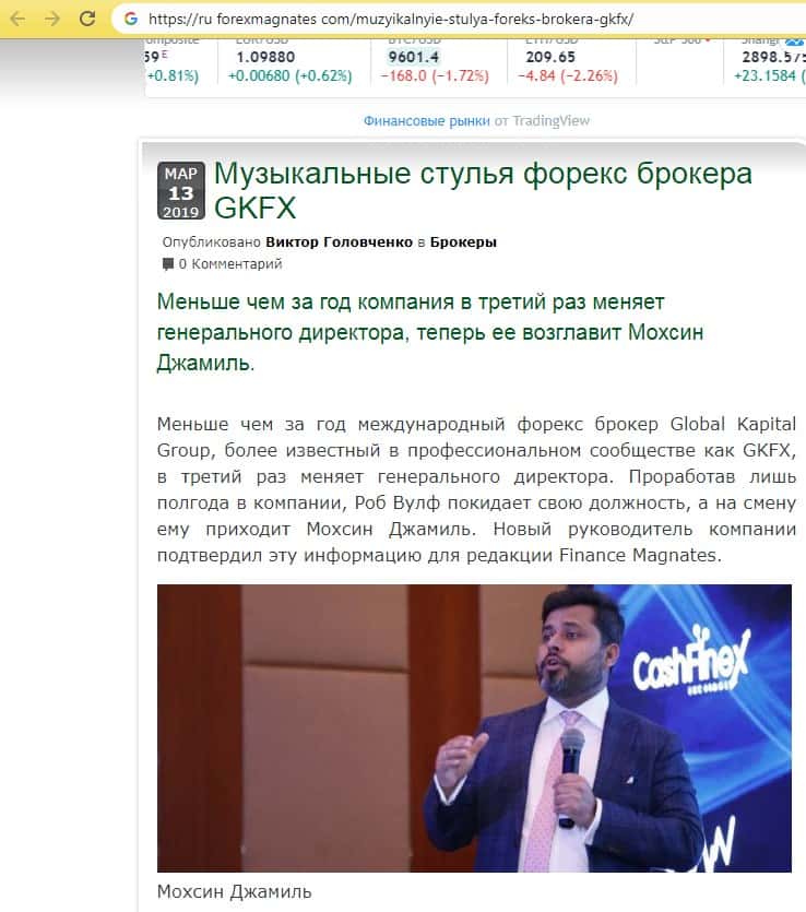 На одном из новостных ресурсов найдена информация о том, кто стал последний генеральным директором конторы GKFX. Перед нами точно подвальная организация и верить в его заявления и обещания нельзя. Поскольку на самом деле проект представляет из себя типичную кухню по сливу денег.