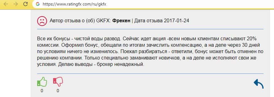 В следующем отзыве указана информация, что контора GKFX продвигается за счет липовых отзывов в интернете и это навевает мысль, что никаких денег она не выплачивает. Да, возможно поначалу они это делали, чтобы попасть на листинг в различные сервисы, но потом все перешло в систему отжимания денег у клиентов.