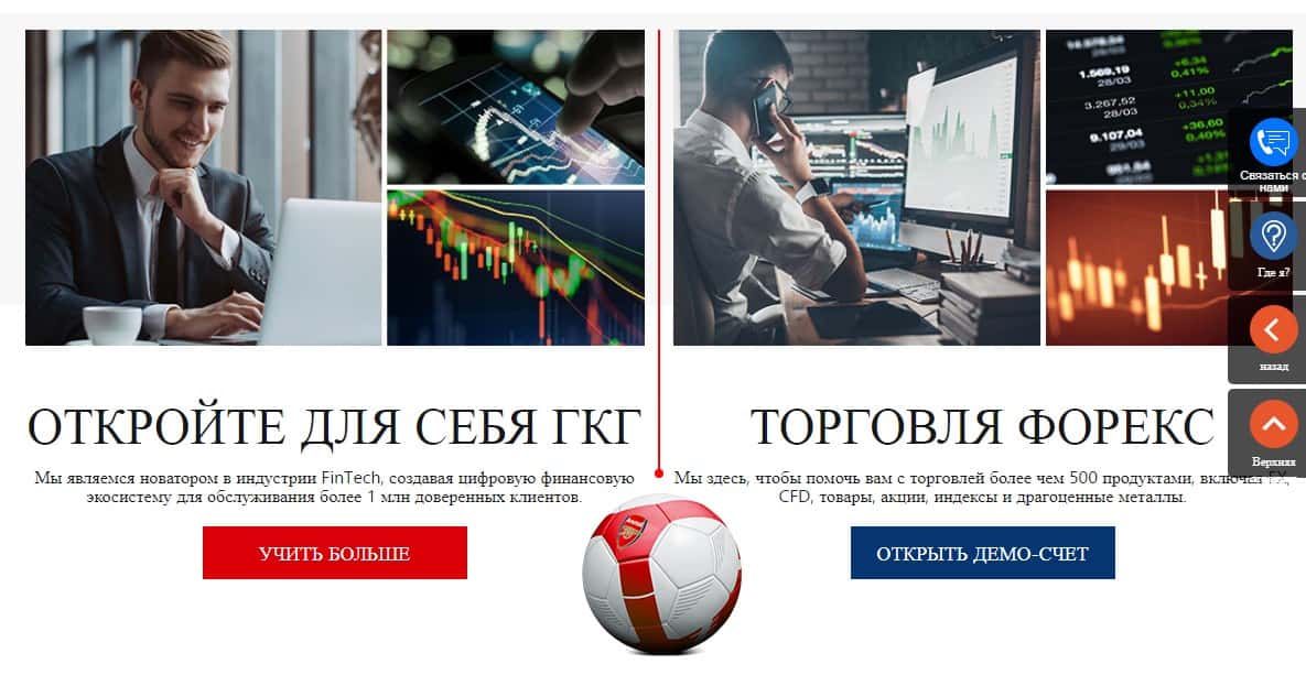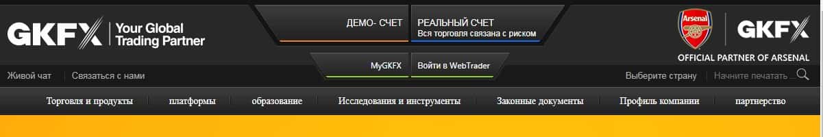 Начинается подвальный сайт у шулеров ГКФХ довольно типично и ожидаемо, а именно со стандартной шапки сайта, в которой у проходимцев GKFX имеется типичная лапша на уши наивной клиентуре, под предлогом которой аферисты ГКФХ будут нагло кидать наивных клиентов на деньги.