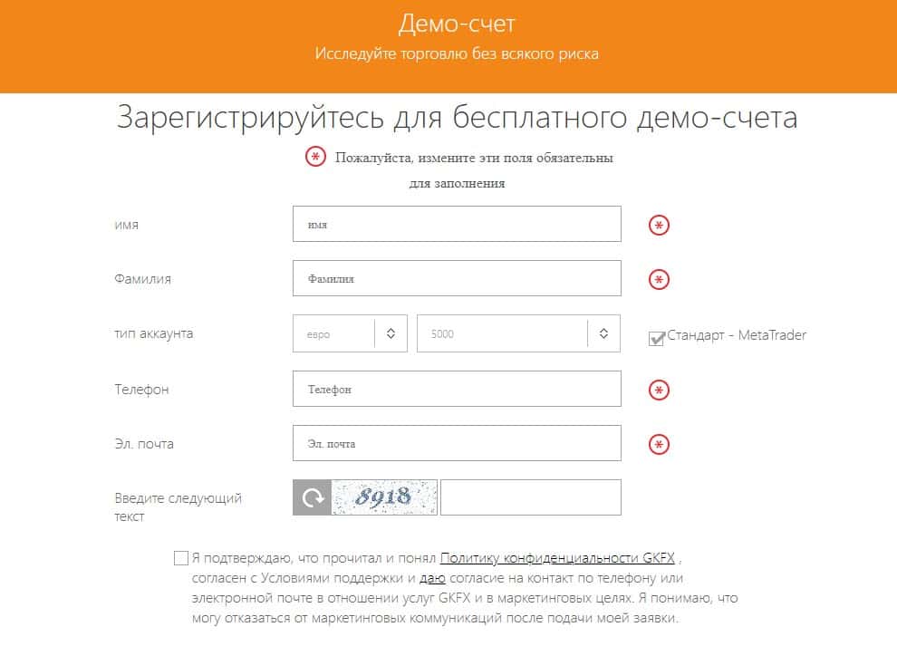 Для регистрации на сайте и создания аккаунта, подвальный сайт шараги ГКФХ открывает форму для заполнения ее данными личного характера, которые в будущем могут быть использованы против вас. Будьте бдительны и не раздавайте личные данные таким шарлатанам, как кухня GKFX.