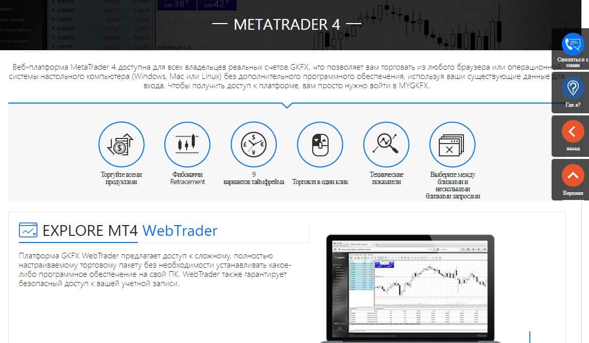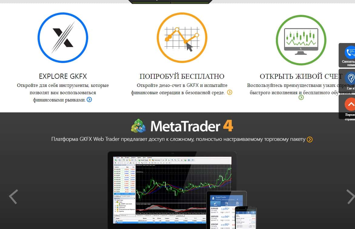 Официальный сайт ГКФХ сделан полностью для того, чтобы привлечь внимание неопытного пользователя сети, который не имеет даже представления, как должен выглядеть реальный брокер. На изображении ниже можно увидеть, как мошенники GKFX ловко подделывают свое превосходство в различных платформах.
